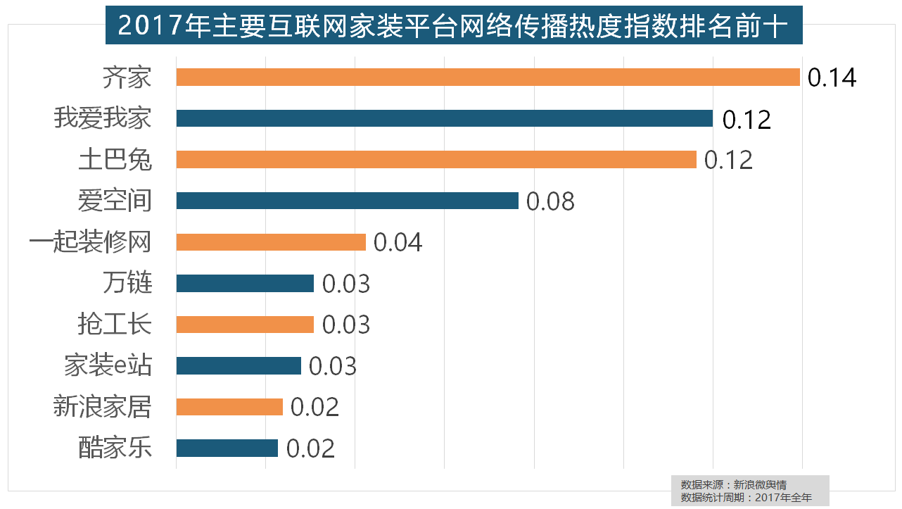 2017年,万链、抢工长、家拆e坐、新浪家居、酷家乐正在年度互联网家拆平台热度榜上排名第六到第十位。据新浪微舆情对2017年我国次要家拆设想公司大数据阐发显示,